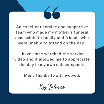"The family were extremely pleased with the services you provided. We had a large number of family and friends watch live, and it provided a marvellous opportunity for people not to miss the event.